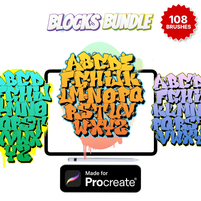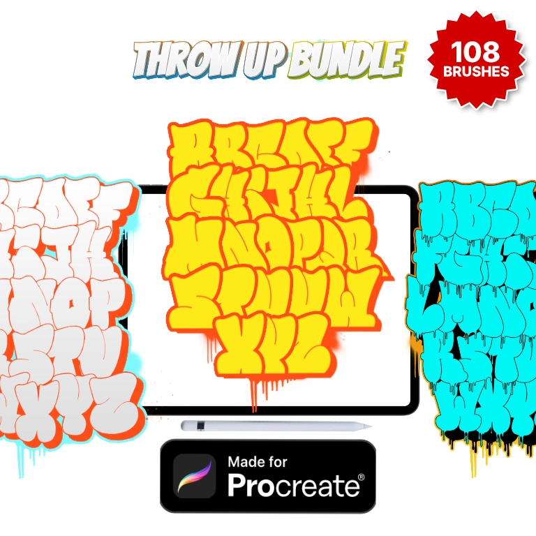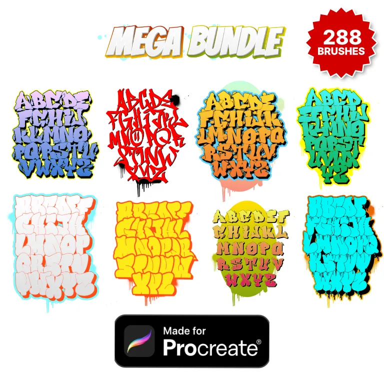 If Procreate is your preferred digital tool for creating graffiti, we can offer you graffiti alphabet brush set bundles and single alphabets for instant visual success.