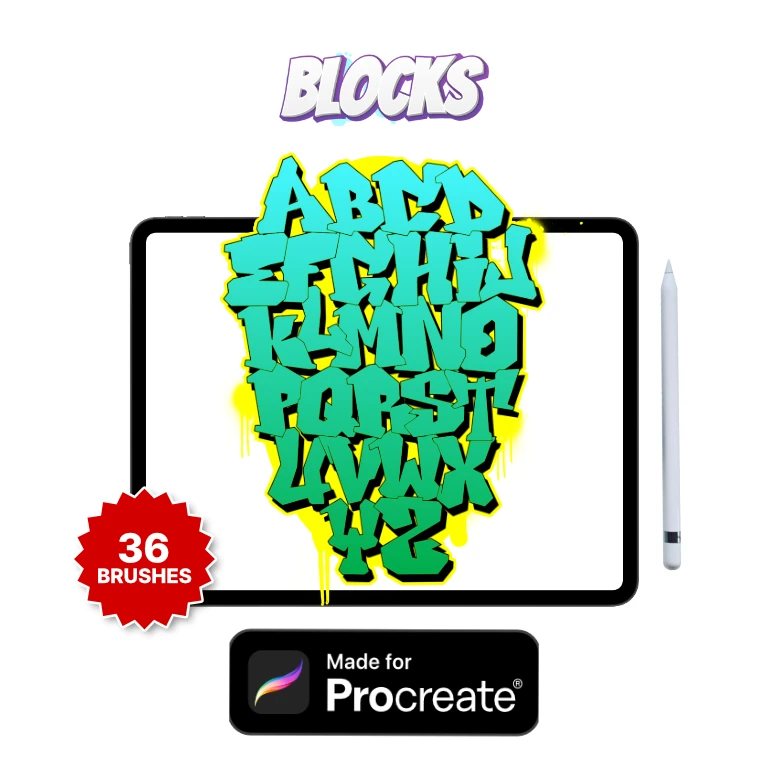 Get instant results with our premium Procreate graffiti alphabet stamp brush sets โ the ultimate toolkit for tattoo artists, digital artists and illustrators who want to create authentic graffiti lettering.
